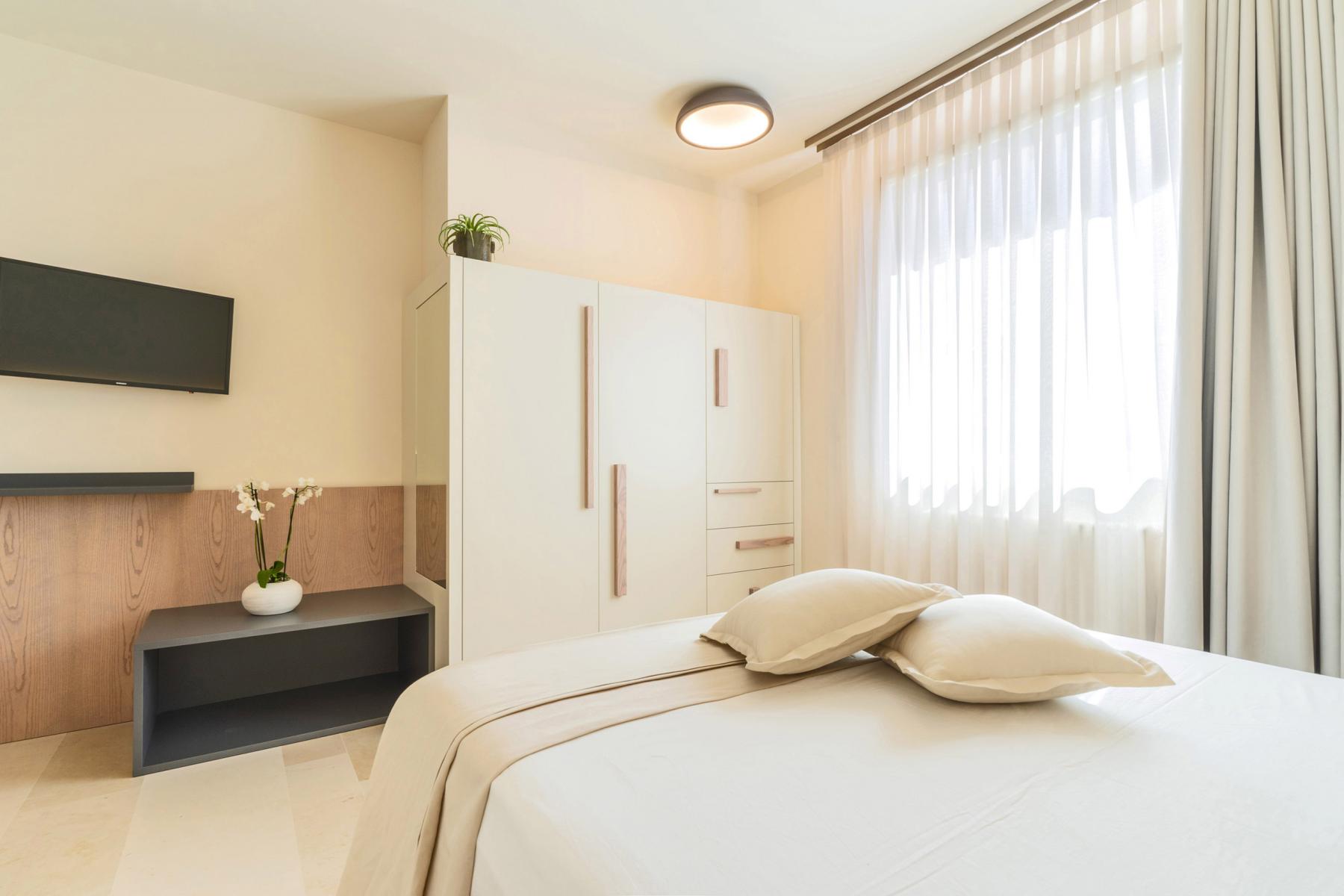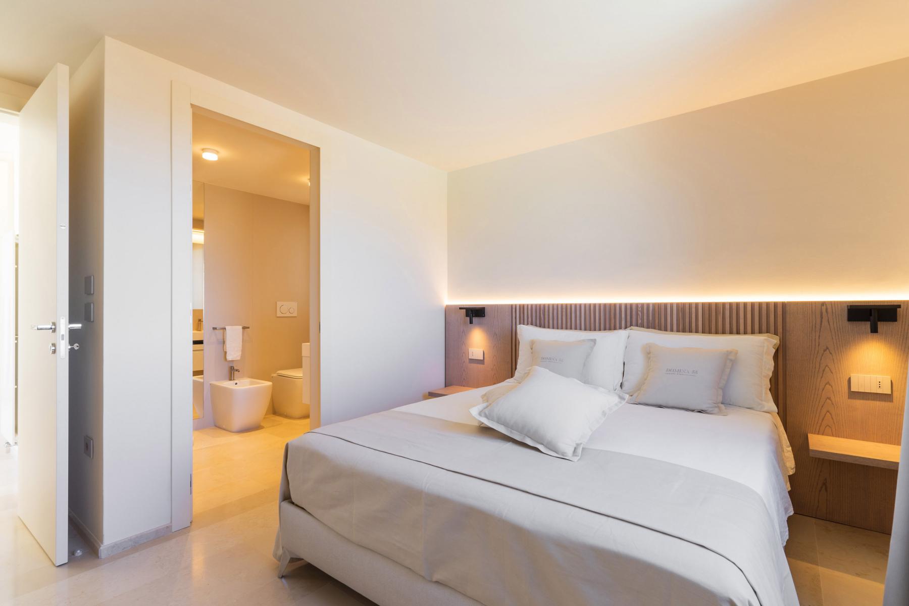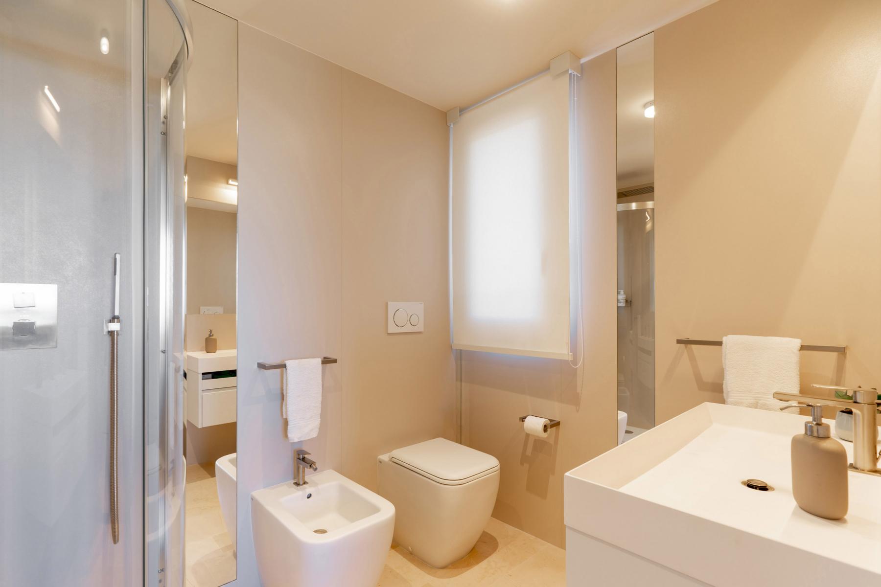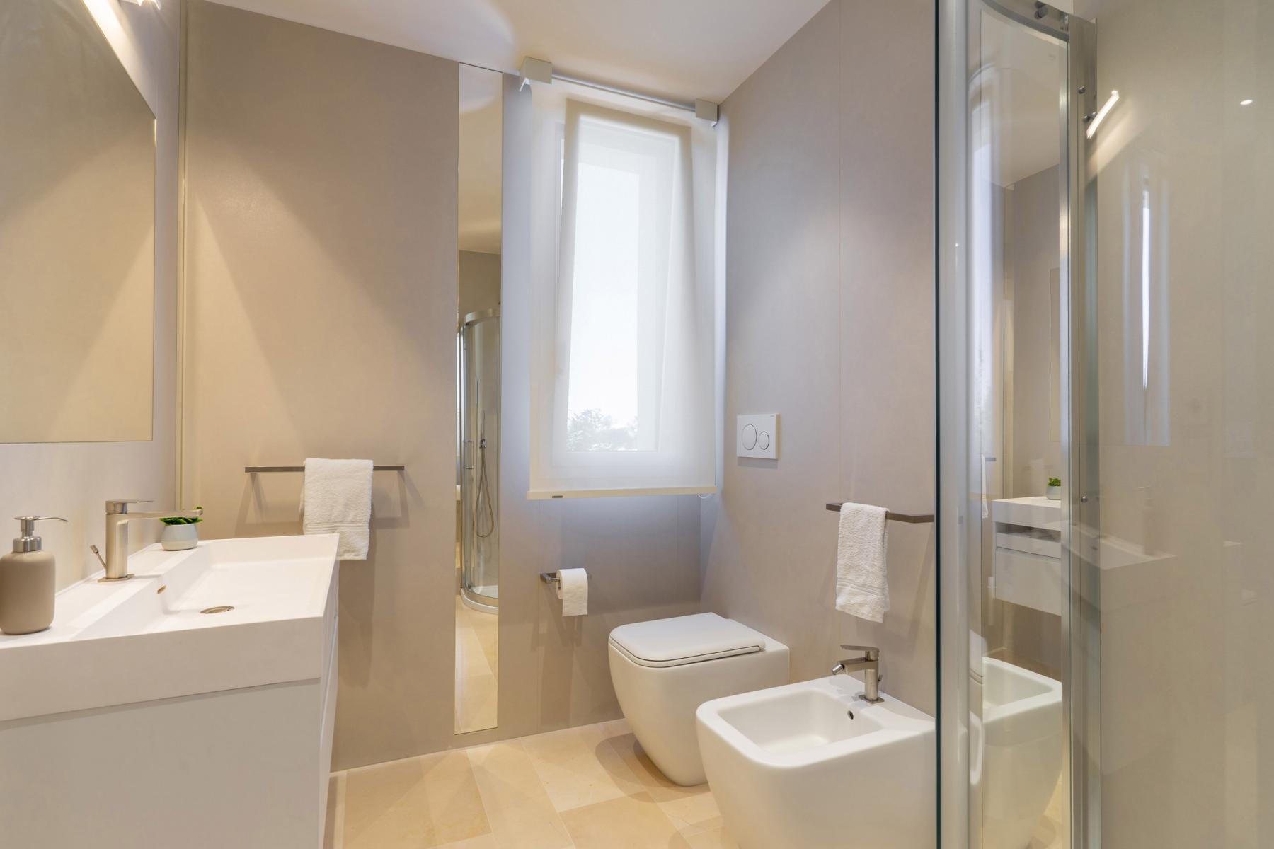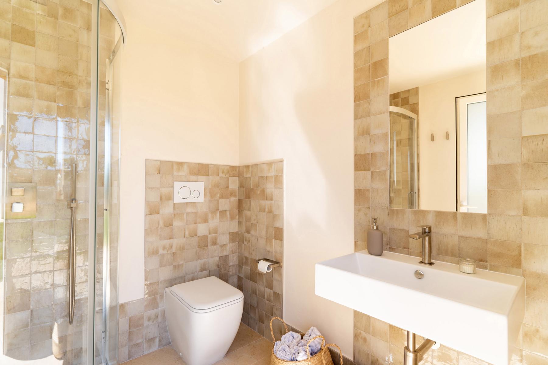Vom Wohnzimmer führt eine bequeme Treppe in die obere Etage, wo sich der Rest des Schlafbereichs entwickelt, bestehend aus 2 Doppelzimmern, ebenfalls mit eigenem Bad.