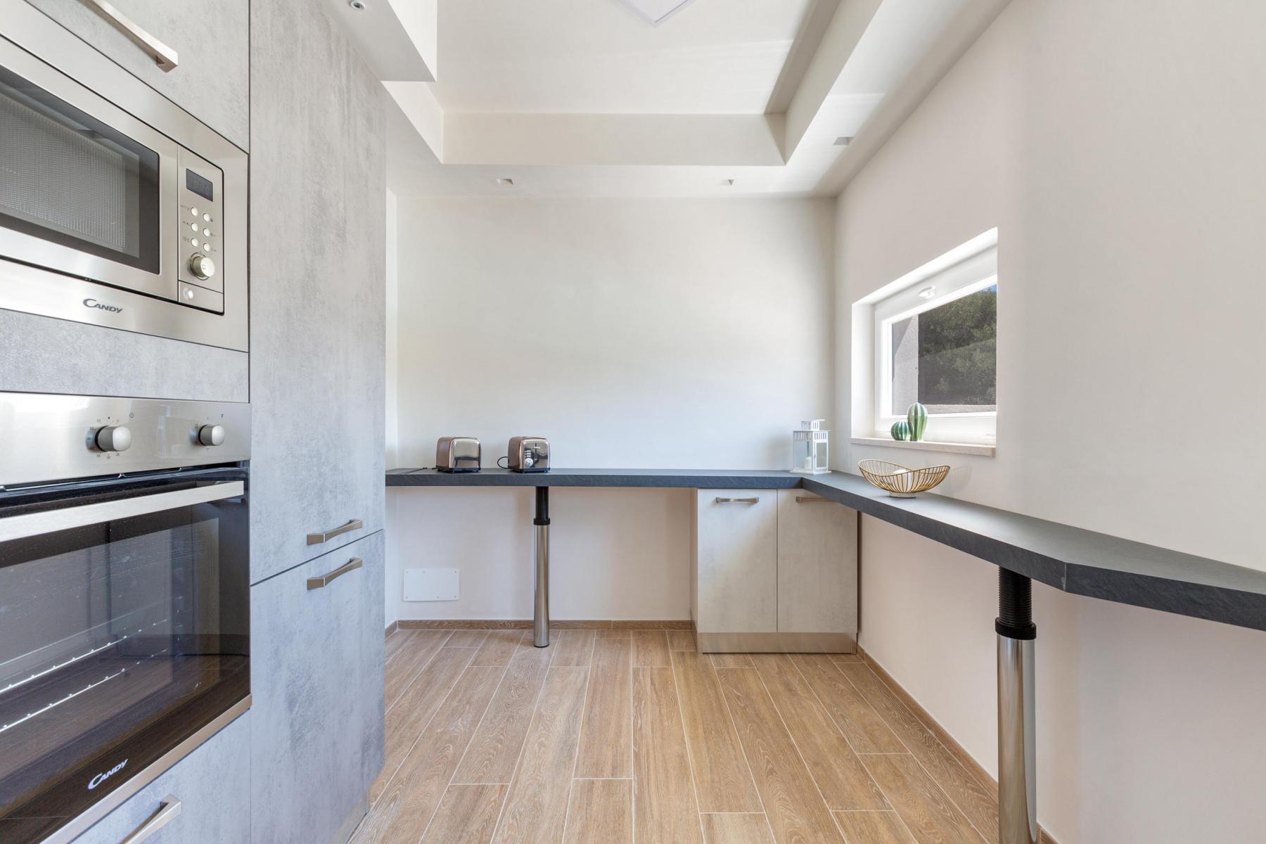 Draußen ist die Villa Navy von einem Innenhof mit Schwimmbad, einem ausgestatteten Solarium und einer geräumigen schattigen Veranda umgeben, die sich ideal für die Organisation von Mittag- und Abendessen im Freien eignet.